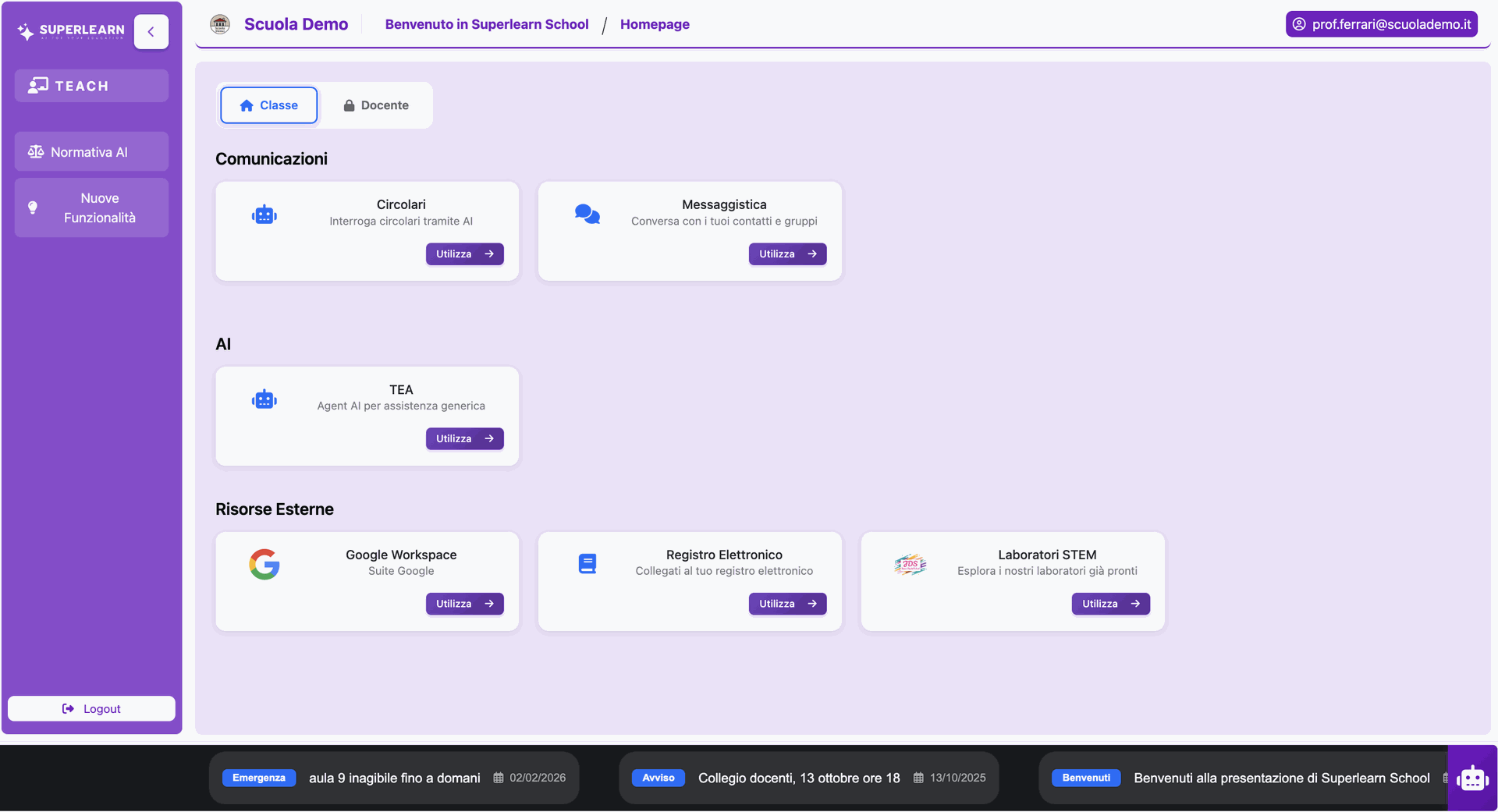 Il modulo Teach è il mondo degli insegnanti.